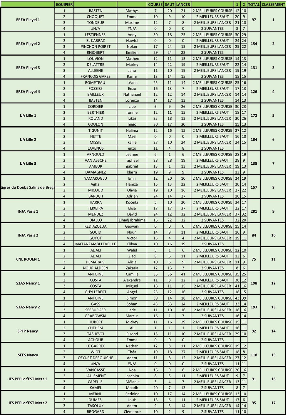 Les performances ont été converties en points. Le classement final a pris en compte l’âge et le type de handicap.